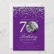 Elegant Photo 70th Birthday Party Silver Purple Invitation