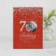 Elegant Photo 70th Birthday Party Silver Red Invitation