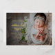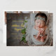 Modern photo birth announcement card featuring a simple design with baby's name in script along with her birth stats in real gold foil over the left side of your favourite full bleed picture on the front. The back has a photo collage with three square photos along with your custom message. This birth announcement card is a great way to announce the arrival your newborn baby girl.