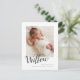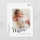 This elegant birth announcement postcard features your newborn's name written in modern calligraphy below your favourite photo. Underneath the script name, you can add your baby's full name, birth date, and birth stats. There is space on the back of the postcard to write a longer custom message to recipients.