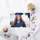 An elegant card to announce a graduation. The front features GRADUATE in a gold foil typography. Personalise with a photo of the graduate, the graduates name, graduating year and school. The reverse has a typography template to personalise with your own message or you can delete all text to leave blank.