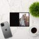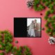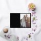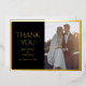 This is a classic and elegant black and gold wedding thank you card using a modern font in gold foil along with a single minimalistic photo and an elegant gold foil border. The reverse side includes a message that you can personalise, along with another photo.