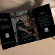 Elegant photo black wedding RSVP details QR code Tri-Fold Invitation