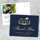 Elegant Photo Blue Gold Graduation Thank You Postcard