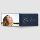 Modern blue graduation party guest book featuring your choice of real gold, silver or rose gold foil, "Graduate" in an elegant script and the grad's name, school and class year in simple typography. Customise your text on the spine and add a photo on the back cover.