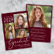 Elegant burgundy red graduation party invitation featuring a 3 photo collage, "Graduate" in a stylish white script, and the grad's name, class year and school or university in simple modern white lettering. On the reverse side, add an additional photo and your graduation party details.