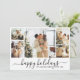 Elegant Calligraphy Simple Black and White 5 Photo Collage "Happy Holiday" Script Holiday Card. This festive, minimalist, five (5) photo holiday card features a pretty photo collage and saying „Happy Holidays”! The greeting text is written in a beautiful hand lettered swirly swash-tail font type. On the reverse side hand drawn pine tree doodle pattern. Pretty greeting card for your family and friends in Winter Holiday season.