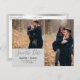 This modern Save the Date has a place for 2 photos and is written in a hand-lettered script. There are silver borders around the photos.
