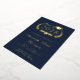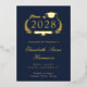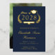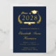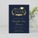 Formal dark blue college graduation announcement featuring genuine foil (choose between gold, silver or rose gold foil), "Class of" in an illustration of a laurel wreath incorporating a grad cap topper and diploma and the graduate's name in an elegant script. Add their school, major, honours or future plans. Their photo fills the back of the card.
