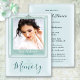 Elegant memorial or funeral service invitation featuring your custom photo framed by a dusty blue with green design. This invitation is beautiful for deceased lady.