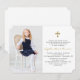 Elegant Photo Girl Gold Cross First Holy Communion Invitation