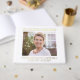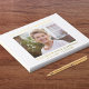 This elegant white funeral and memorial service guest book is perfect for remembering your loved one. It features your personalised text in gold foil, your favourite photo, and "In Loving Memory Of" and their name and birth and death dates in classic serif typography. You can also personalise the text on the spine and add an inspirational message or bible passage on the back.