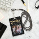 Elegant, trendy business badge for notary loan signing agent featuring faux foil gold handwritten calligraphy script ''notary'' on a black background. Personalise with your details.