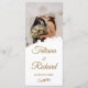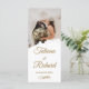 This elegant wedding program feature a space for a photograph of you and your soon-to-be spouse, and text in a classic and sophisticated gold script.