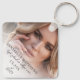 A stylish and modern graduation keychain featuring a full-page photo with a soft white ombre at the bottom, creating the perfect space for text overlay. The design includes "Class of 2025" (or any year) in elegant grey fonts, with the graduate’s name and school displayed below in sophisticated handwritten script. The grey text blends seamlessly with the ombre effect for a polished and timeless look.