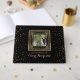Create your own monogrammed black and gold graduation party guest book with personalised photo- Elegant, sophisticated black and gold frame displays a square, personalised graduation photo. Black and faux gold metallic inner and outer border with gold glitter in the centre and gold metal look scrolls in the corners. Against a black background. Personalised with guest of honour's name in elegant, black script at the bottom in gold colour. Graduation year and name of school printed above. Reads 20XX Graduation Guests in gold on the spine, with custom text template to customise graduation year. Front and back sides scattered with faux gold foil confetti dots. Matching black and gold confetti look background on back and spine. Perfect if your school colours are black and gold. Complements gold graduation party themes as well as elegant graduation parties. Perfect for 1920s theme Art Deco Great Gatsby graduation parties, too.Notice: No actual glitter, confetti, or metal. All images are printed. Click Customise option to change text colours, size, and font styles or placement. Easy to customise for any special occasion or function such as wedding shower, retirement party, baby shower, milestone birthday party, etc. Visit my Zazzle.com/angela65 shop for matching black and gold confetti graduation party supplies and other monogrammed graduation guest books.