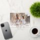 Happy New Year in beautiful real gold foil overlays your favorite photo with your names in chic lettering on these new year flat greeting cards.