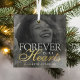 Elegant memorial christmas ornament featuring a picture of your lost loved one, the text "forever in our hearts", and their name.