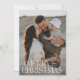 Elegant photo modern minimal natural olive green watercolor botanical typography Merry Christmas holiday flat card.