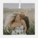 Modern newlywed ornament with a simple design featuring the names of the bride and groom in an elegant handwritten script across the top left and the wedding date in the bottom right, over your favourite wedding photo. The chic hand lettering adds a romantic touch. This ornament makes a great gift for a newlywed couple for their first Christmas married.