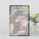 Modern photo wedding menu with a sheer overlay and your menu in black text. The header and your names are in an elegant script. A chic and stylish design that coordinates with any style of wedding. These cheap wedding menus are printed on sheets of paper for a budget friendly option.