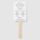 Modern wedding program hand fan featuring a simple design with your names in an elegant handwritten script at the top left and your wedding details in right alignment at the bottom right, over your favourite photo. The backside has your order of ceremony, wedding party and thank you message in black over a white background. The chic hand lettering adds a romantic touch to this minimalist design.