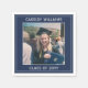Add a personalised touch to college or high school graduation party decorations with these custom navy blue and white paper napkins. Picture and all text are simple to customise. (IMAGE PLACEMENT TIP: An easy way to centre a photo exactly how you want is to crop it before uploading to the Zazzle website.) Design features a stylish navy blue border, elegant modern typography, and one photo of the graduate, such as a senior picture or image from the commencement ceremony. Wording can include class year, name, school, congratulations, or other message of your choice, such as a favourite inspirational quote, motivational saying, thanks mum and dad, etc. Congratulations to the graduate!