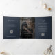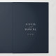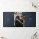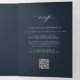 Elegant photo navy blue wedding RSVP details QR Tri-Fold Invitation