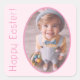 The design features a personalised photo in an elegant, framed oval shape along with customisable typography that reads "Happy Easter!" It is an elegant card for sharing kids' photos and spread the joy of the holiday.