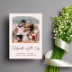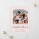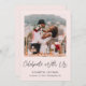 Elegant light pink elopement or smaller wedding announcement and post-wedding party or reception invitation. The front features your photograph, "Celebrate With Us" written in a chic script and your first names, wedding date and location in simple modern typography. On the reverse side, personalise your wedding or elopement announcement in more detail, add a reception or party invitation and sign your married names in a signature-like script.
