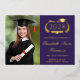 Modern purple college graduation party invitation featuring "Class of" in an illustration of laurel wreath incorporating a grad cap topper and diploma, all in real gold foil, a photo of the graduate and their name in an elegant script. Add their school, major, honours or future plans. On the back, add the grad party details in simple light gold typography.