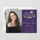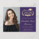 Formal purple college graduation announcement postcard featuring the grad's class year, an illustration of laurel wreath, a grad cap topper, a diploma, a photo of the graduate and their name in an elegant gold script. Add their school, major, honours or future plans. On the back, add an additional photo and your personalised message.