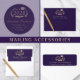 Formal purple college graduation announcement featuring "Class of" in a light gold illustration of laurel wreath incorporating a grad cap topper and diploma, a photo of the graduate and their name in an elegant light gold script. Add their school, major, honours or future plans.