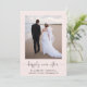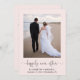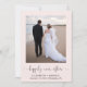Elegant light pink elopement or private wedding announcement and reception invitation that features your photo and "happily ever after" in a chic script with swashes. On the reverse, personalise your wedding announcement, add a reception or party invitation, input your wedding website address to create a QR code for guests to scan to RSVP online and sign your married names in a signature-like script.