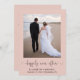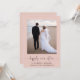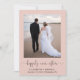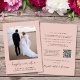 Elegant blush pink elopement or private wedding announcement and reception invitation featuring your photo, "happily ever after" in a chic script with swashes and your first names, wedding date and location. On the back, customise your wedding announcement, add a reception or party invitation, input your wedding website address to create a QR code for guests to scan to RSVP online and sign your married names in a signature-like script.