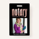 Elegant, trendy business badge for notary loan signing agent featuring faux foil rose gold handwritten calligraphy script ''notary'' on a black background. Personalise with your details.