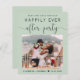 Elegant budget-friendly sage green save the date announcement for a wedding reception or party to celebrate your elopement or private wedding. The front features your photo and "Save the Date for Our Happily Ever After Party" in simple typography and a chic script with swashes. Under your photo add your first names and reception date. On the reverse side, personalise your message and add the party or reception save the date details and your names in a signature-like script.