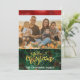 Elegant Photo Trendy Handwritten Script Christmas Holiday Card. Digital vintage and faux gold effect. You can personalise the family name.