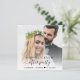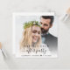 Elegant elopement or small wedding announcement and reception invitation to let family and friends know that you were married in a small intimate wedding ceremony, and to invite them now to a wedding reception. The front features your wedding day photo and "Happily Ever After Party" in a mix of simple typography and a trendy script with swashes. Under your photo, add your first names and wedding date. On the reverse you can personalise your message in more detail and add party or reception details and your names in a signature-like script.