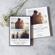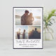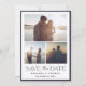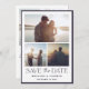 This is an elegant and classic wedding save the date card using an elegant and modern font along with three photos and an elegant border. The reverse side includes a message that you can personalise, along with another photo.