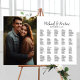 Elegant wedding seating chart featuring a simple design with your names in over your favourite photo. Just edit the tables and names. Available in printed format or as downloadable file.