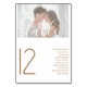 The Elegant Photo Wedding Table White Table Numbers are perfect for spring, summer and fall weddings. The table number features your favourite picture combined with classic gold typography on a simple white background . The beautiful design is modern and elegant, giving the sign a classy feel.