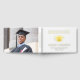 Elegant white graduation party guest book featuring your choice of gold, silver or rose gold foil, a grad cap, "Graduate" and the grad's name, school and class year in classic serif typography, and their photo on the back.