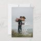 Announce your special day with this timeless RSVP card featuring a romantic theme. The design showcases a photo of the couple, beautifully complemented by elegant serif typography on the other. The neutral tones of soft greys, whites, and blacks evoke sophistication and tranquillity, perfect for a wedding near the sea or with minimalist aesthetics. The refined font choice adds a modern yet classic touch, ensuring your announcement feels both personal and luxurious. Ideal for couples seeking a chic and understated design.
