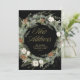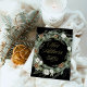 This stunning holiday moving announcement features a Christmas wreath with elegant botanical greenery foliage, and pine cones with festive white flowers on a dark black background. Modern faux gold script calligraphy says "New Address" in the centre of the wreath where you can add your new home address. The back has a matching design with room to add a personal holiday message. A simple yet stylish way to share holiday greetings and let friends and family know you have moved.
