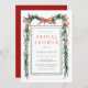 This bridal shower invitation features a watercolor pine branch frame (border) decorated with red ribbons, holly berries, botanical greenery, and stylish calligraphy. For more advanced customisation of this design, please click the "Customise further" link. Matching items are also available.
