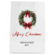 Celebrate the season of giving with this elegant Christmas wreath gift bag, featuring a classic watercolor design of pine branches, holly berries, and pine cones, accented with a red and green plaid pattern. The timeless red, green, and gold color palette adds a warm, festive touch that pairs beautifully with any holiday gift. Designed in a minimalist rustic style, this bag blends tradition and elegance perfectly. Personalize it easily with your family name or special message to make your presents extra meaningful. Perfect for gifting during Christmas gatherings, parties, and celebrations — a lovely way to wrap your holiday cheer with style and charm.