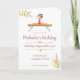 Beautiful and elegant birthday invitation on pink and gold colours* (*note that the gold colour is printed and not actually foil is going to be in the invitation). Gymnastics themed related, the illustration is a girl on a beam. Personalise the text with your own information or click in customise to change the fonts, their colours and sizes. Illustrated and designed by Patricia Alvarez.