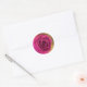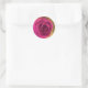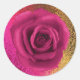 Chic round sticker / envelope seal done in a gradient pink to gold foil look background. Graphics of a real looking pink rose decorates the middle of the sticker. Customise to add any text you want. Lovely way to finish off your invitation envelopes.