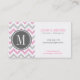 Elegant Pink and Grey Chevron with Monogram Business Card